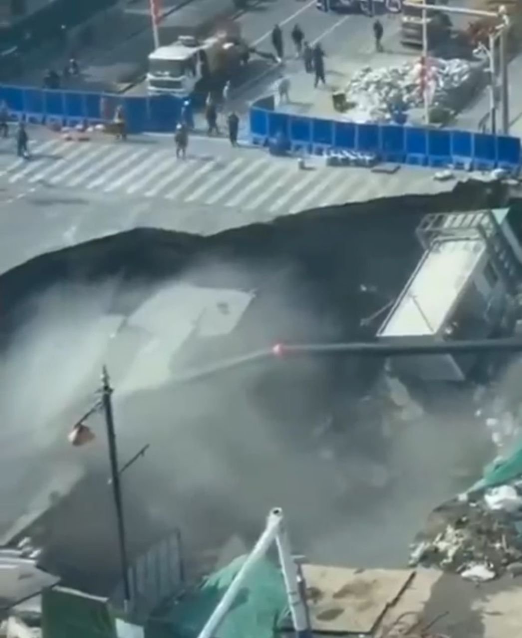 Ce 12 février 2026, suite à une défaillance technique sur un chantier de construction sur la ligne Jiamin du métro de Shanghai, une intersection routière s’est littéralement effondrée, formant un gouffre massif (sinkhole).