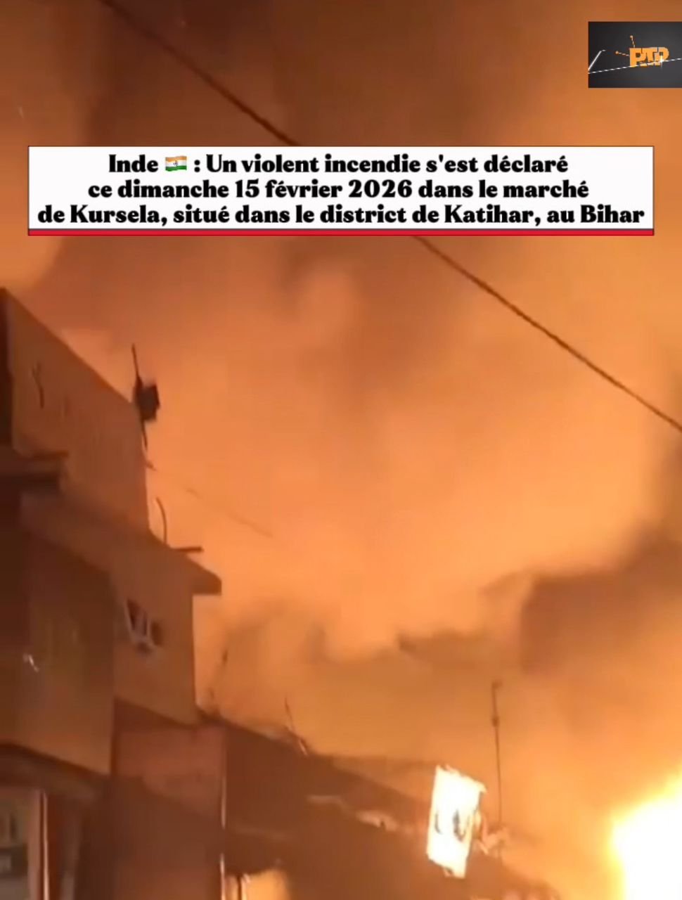Un violent incendie s’est déclaré ce dimanche 15 février 2026 dans le marché de Kursela, situé dans le district de Katihar, au Bihar.